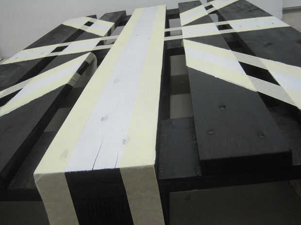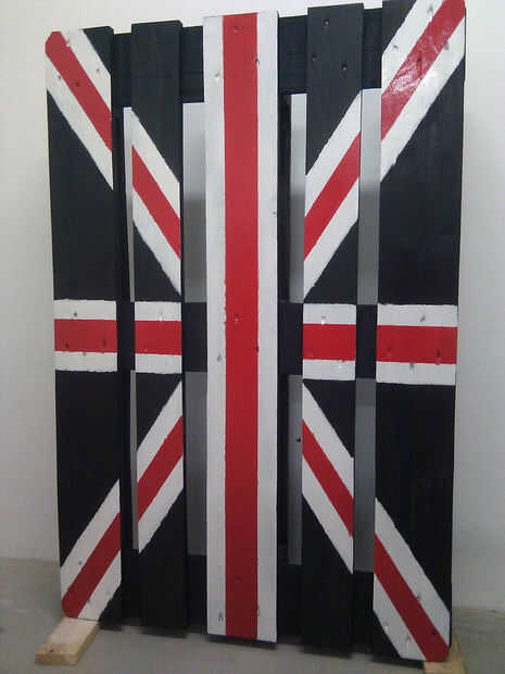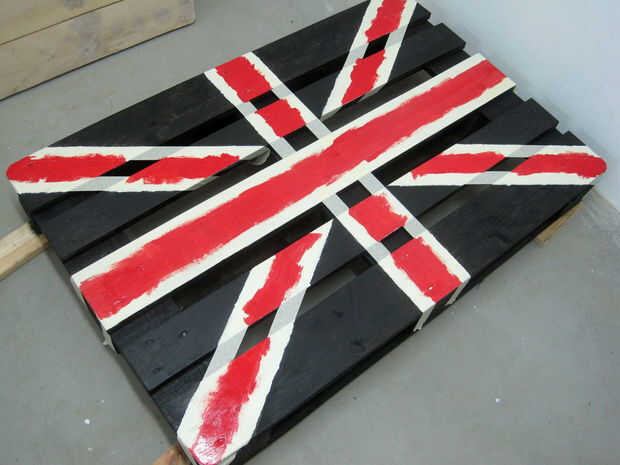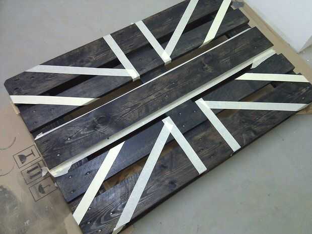 Después de pintar dos paletas en negro es hora de cinta de enmascarar y el diseño de bandera Union Jack. No uso diseño exacto de la bandera porque era más fácil así y ha no era tan importante. Han paciencia y prensa el masking de la cinta realmente Dios o pintura irá debajo de él - esto me pasó a mí pero no era tan importante también.
