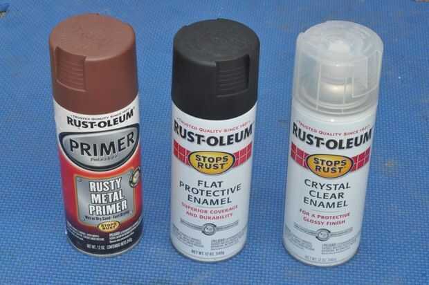En este caso, he utilizado dos de sus productos de aerosol, Cartilla de METAL oxidado y esmalte negro mate. Seguí que con algún detalle trabajo de preparación con una capa clara.