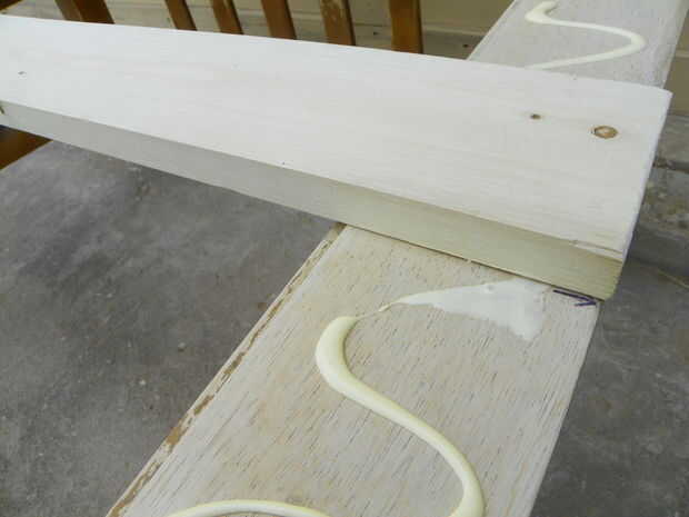 Marque el centro de la mesa en lados opuestos. Si usted necesita un número par de placas como lo hice, coloque una tabla a cada lado de la línea central. Si utiliza un número impar de placas, coloque la mitad de la Junta de centro en la línea central. Utilizar un pegamento especial para madera.  Poner las tarjetas sobre la mesa y deje que el pegamento seque durante al menos una hora antes de intentar clavar.