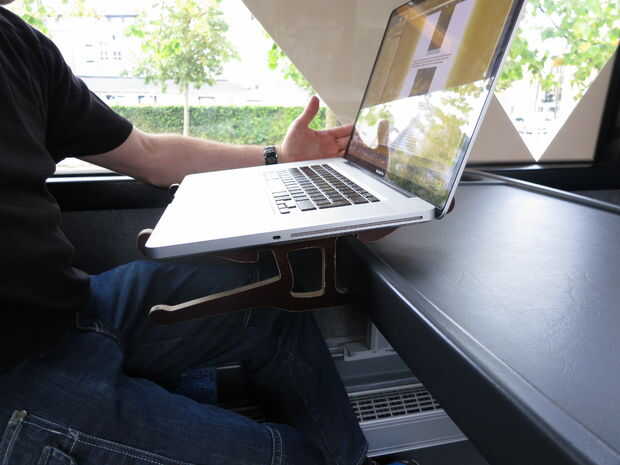 yo he ir a trabajar por algunos años ahora. Prefiero a trabajar durante el viaje en lugar de tener que dirigir el coche yo mismo. Para mi comodidad para ello inventé esta mesa plegable de peso ligero. La tabla tiene dos extremos diferentes para dar cabida a los dos tipos de tablas el autobús utiliza la empresa.