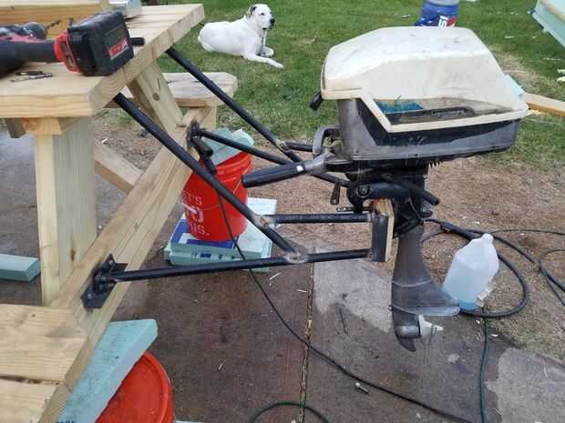 utilicé tubo de gas de 1/2" y ángulo de hierro para la construcción de un montaje del motor