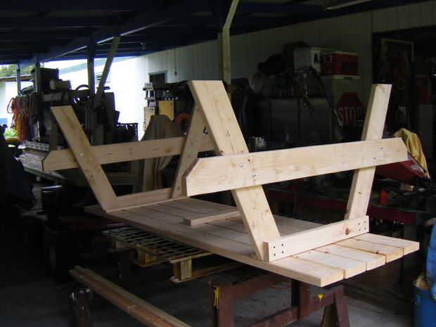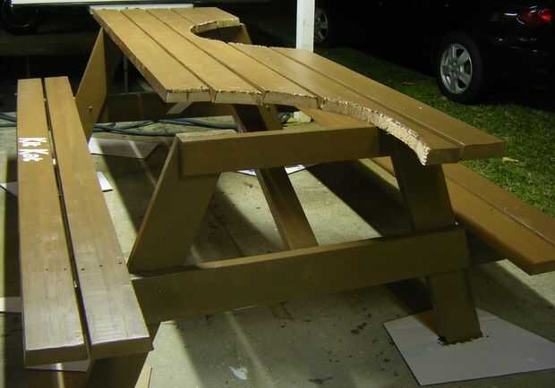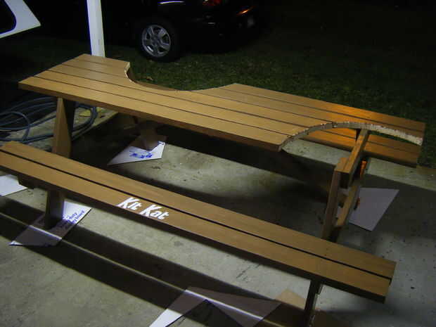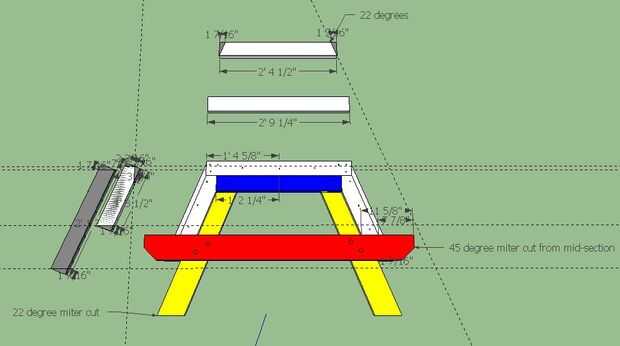 Estas mesas de picnic son cada uno de una sola hoja de madera contrachapada, tomar unos 30 minutos para marcar y alrededor de 1 hora para cortar. El lijado y la pintura es hacia el individuo, por lo que no cito a cualquier momento, para estos dos pro