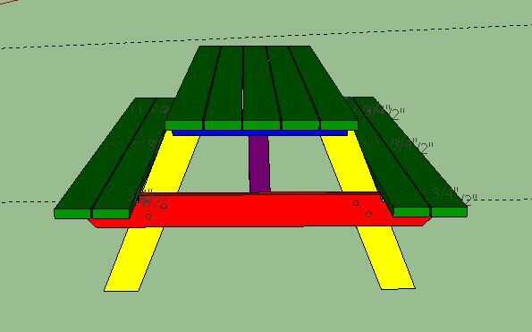 2 x 6 y 2 x 4 mesa de picnic.Lista de materiales: 15-2 x 6 x 8 madera tratada6 - 2 x 4 x 8 madera tratada2 - cajas de 9 libras 2 y 1/2" exteriortornillos20 - 3/8 "x 3" tornillos de galvanizar24 - 3/8" tuercas de galvanizar24 - 3/8"
