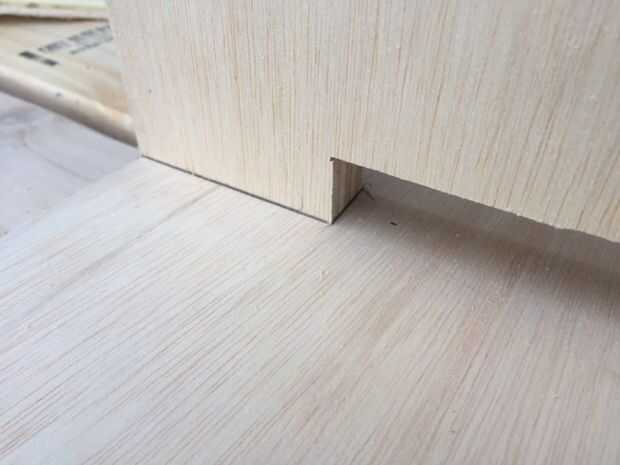 Ahora que las partes han sido corte áspero hacia fuera, es hora de agregar algunos de los detalles que lo hacen van de la mano. El primer paso es muesca que es compatible con el asiento para el grueso de los escaños. Sólo podría asumir que es la madera contrachapada de 3/4" densamente, pero es probablemente 23/32" de espesor. Así que en lugar de medir y llegar a ti mismo en problemas, utilice un pedazo de chatarra para determinar el espesor. Otra penetración corte cortes más de la muesca. Entonces acabaremos con una sierra de mano o con plantilla.
