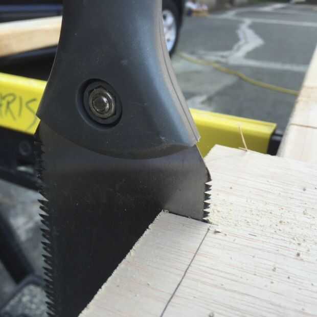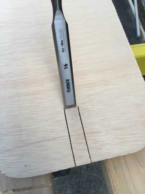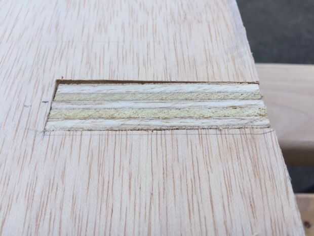 El tirón de la sierra hizo el trabajo rápido de corte en la línea para asegurarse de que los ajustes de medio empalme de regazo. Puede utilizar una sierra de calar para liberar los residuos, pero usé un cincel. Pop el apoyo en el asiento y listo, tu primer conjunto! Voltee el asiento y Compruebe hacia fuera la articulación.