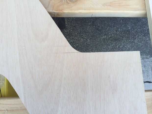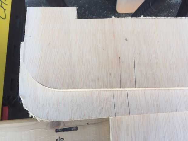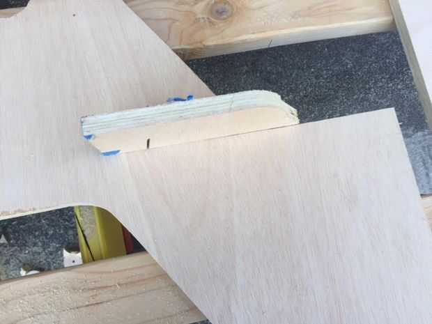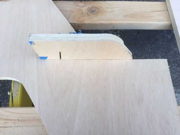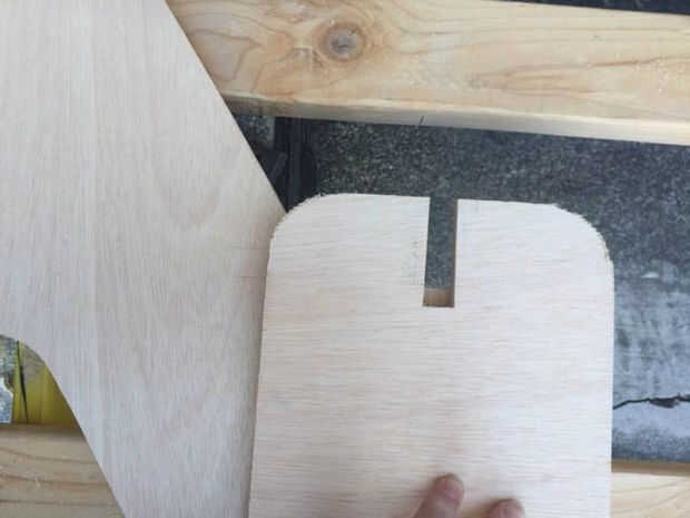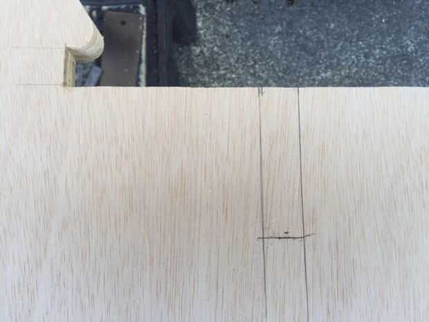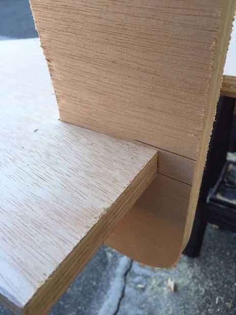 Se ha cambiado la profundidad de las ranuras en los soportes del asiento. Quería una conexión más fuerte, así que hice la ranura 3" profundo en la mesa de lado y que corte. Pues yo utilizaba el soporte sí mismo para averiguar cómo profundo para hacer la ranura correspondiente. Para hacer esto, deslice el soporte de la mesa lateral hacia atrás y haga una marca en el borde de la madera contrachapada. Esto hará que la segunda ranura profundidad perfecta para que el apoyo quede alineada y luego se monta la Junta.