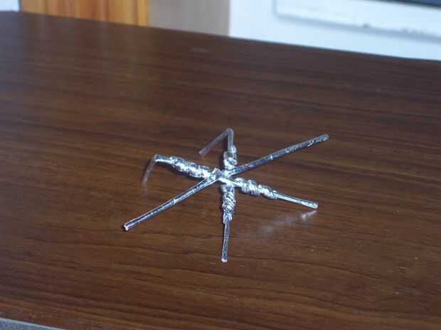 Se necesitan dos conjuntos de estas figuras (que parecen arañas, con 6 patas y calibradores de espesor). La mesa se ajusta entre los conectores superior (palpadores).