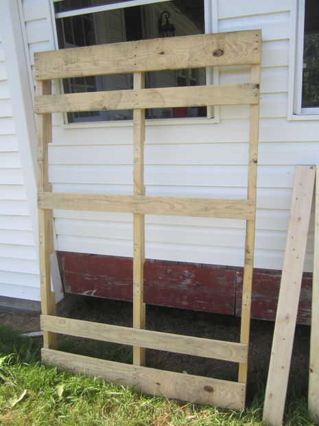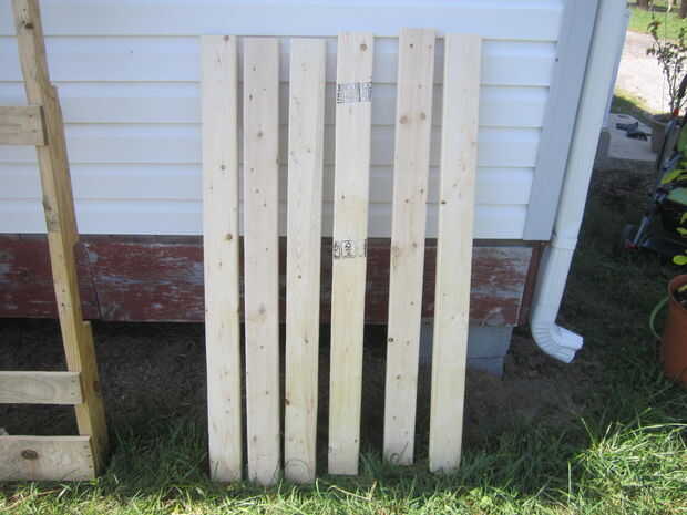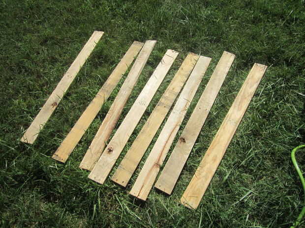 Retire todos los tablones de la parte posterior de la plataforma. Quitar los tablones desde el frente excepto las dos tablas en cada extremo. Dejar éstos en modo que la mesa siga siendo cuadrada. Una vez que tengas todos los tablones que quitar, quitar todas las uñas existentes de las tablas. Una vez hecho esto, tenía:
