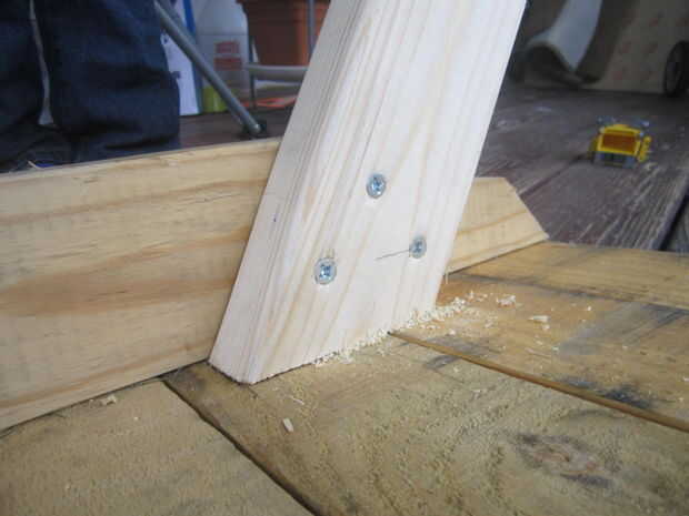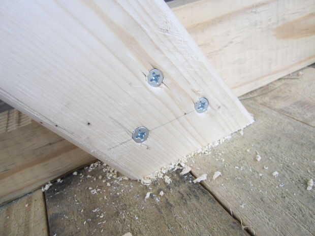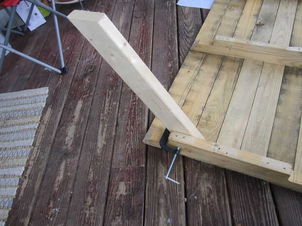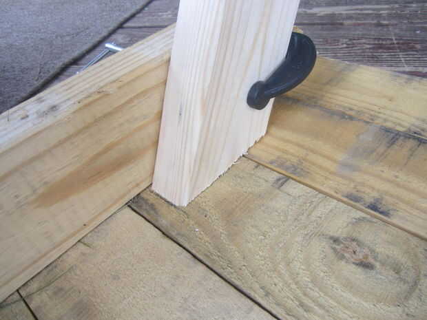 Tome dos de las piernas y puso unos 5" aparte en la parte inferior de la mesa, contra el interior de la viga transversal externa. Asegurar con abrazaderas para que no cambian en su cuando atornille a las vigas. Os adjunto mío con tres tornillos de 2,5" por la pierna. Puede utilizar los pernos de carruaje, como se ve en muchas mesas de picnic de tamaño completo, pero no fui a esa ruta.