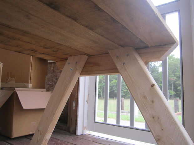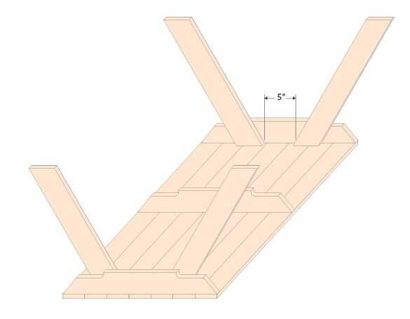 Quiero recordar que esta medida puede variar basado en el tamaño y altura acabada prevista de su mesa. Diseñé mi mesa a una altura de asiento de 12" y 21" mesa altura. Para ello, dos de mis 48" largo 2x4s, tomé de los extremos en un ángulo de 30 grados con una mitra de sierra, encontró el medio de cada tabla y corte en 30 grados otra vez. Esto me dio cuatro mesa piernas 25" de longitud y 20" de altura cuando se inclinó en un ángulo de 30 grados del suelo.