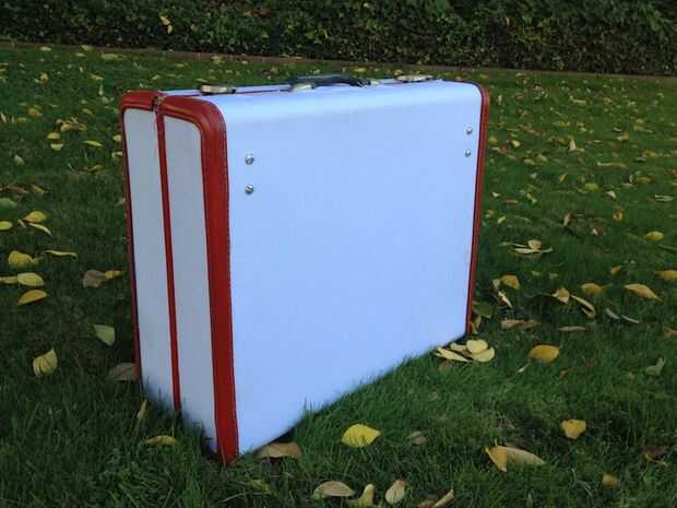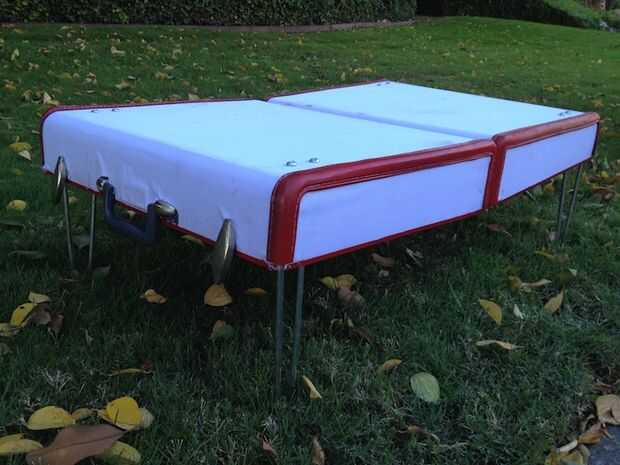 Mi generación sigue muchos de los pasos que Carleyy en su guía, con algunos ajustes basado en mis circunstancias. Mi maleta estaba en bastante mal estado, así que revestir el interior y exterior con tela nueva. También decidí hacer mi propio plegable patas de la horquilla de la tabla en lugar de patas de madera.