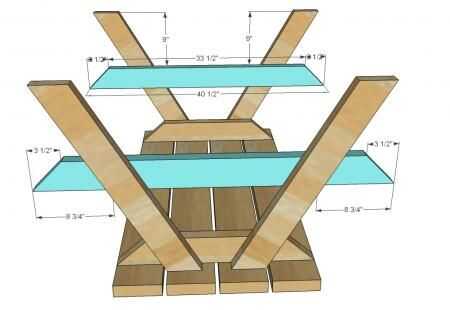 Piernas. Cortar las piernas como se muestra arriba, con un ángulo de 30 grados de Plaza en ambos extremos. Usar 2 tornillos de 1/2 pulgadas para fijar las patas a los soportes del tableros. También puede usar los pernos para una mesa más fuerte.
