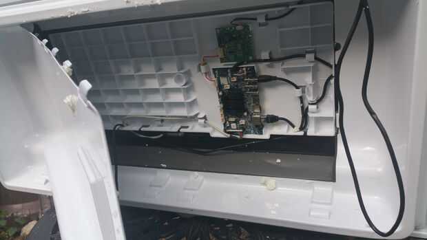técnicamente es un reproductor de vídeo en una puerta del refrigerador para demostrar las características de los nuevos frigoríficos próximamente en una tienda cerca de usted. Cuando llegó el refrigerador real, la cáscara vacía de un demo no trabajo fue reciclada. me quitan el reproductor de video de 21" de la puerta.