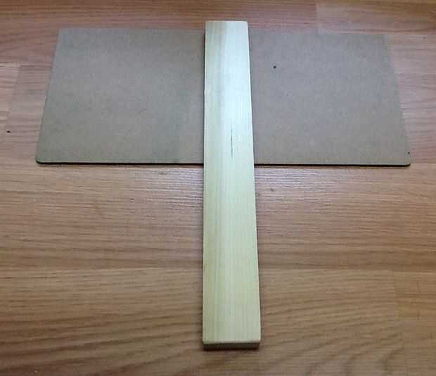 Pegue el asa en la parte inferior del centro de muerto de mesa. Use pegamento de carpintero de buena calidad. Medida para obtener precisión. Asegúrese de que el agujero está en el lado de opposite,(green).