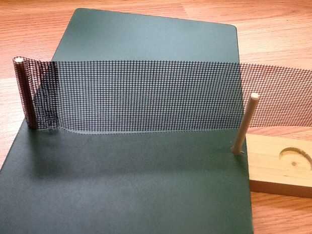 Cuando el pegamento se seca, perfore dos agujeros de 7/32", 1/4" desde cada extremo de la mesa para que formar una línea que divide la mesa en medio. Hacen 3/16" profundidad. Introduzca los tacos en ellos. Ventana de plástico de la pantalla alrededor de un pasador e hilo de alambre fino a través de los agujeros en la pantalla de seguridad alrededor de la espiga. Cortar la pantalla sobre una media pulgada más largo que la distancia hasta el otro pasador, envuelva el extremo alrededor de la espiga y repita el proceso de cableado. Ahora estás listo para jugar. Conseguir algunos ping pong bolas y probarlo.