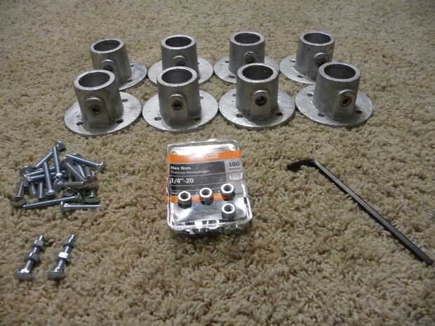 - Kee Rd111 - las articulaciones que conectan todo juntos, utilizan un tornillo hexagonal para apretar sobre un tubo y son fáciles de colocar o quitar. La diferencia entre vendedores es marca y acabado (cromo vs galvanizado), funcionan igualmente bien. La diferencia de precio para un grado 90 Tee toma dos es $12 en diseño simplificado (no recomendado) vs $3 en el laboratorio de seguridad de la fuente--se suma.