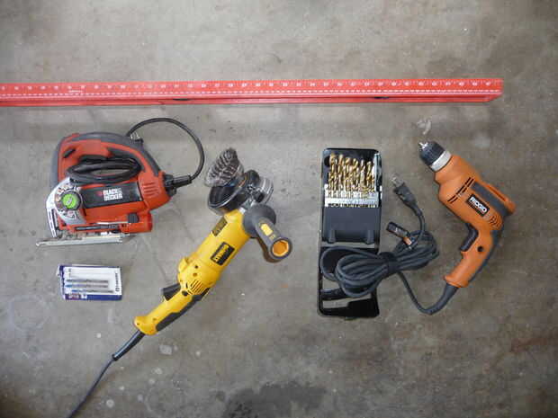 - Taladro eléctrico - perfora los agujeros que conectan las bridas de la tubería a la placa. Se utilizaron dos bits, un 1/4" y 9/16".