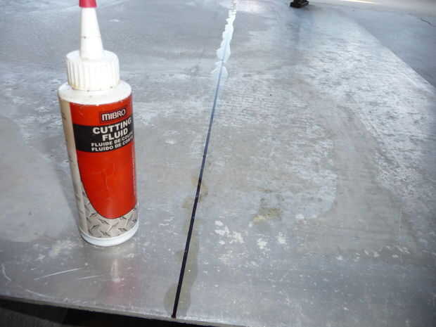 - Pone una raya gruesa de fluido de corte a lo largo de la línea. Que no debería causar el rotulador a la purga de tinta. Utilice una hoja de metal gruesa TPI (dientes por pulgada) 12-16.