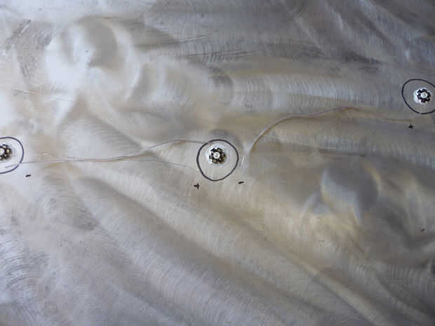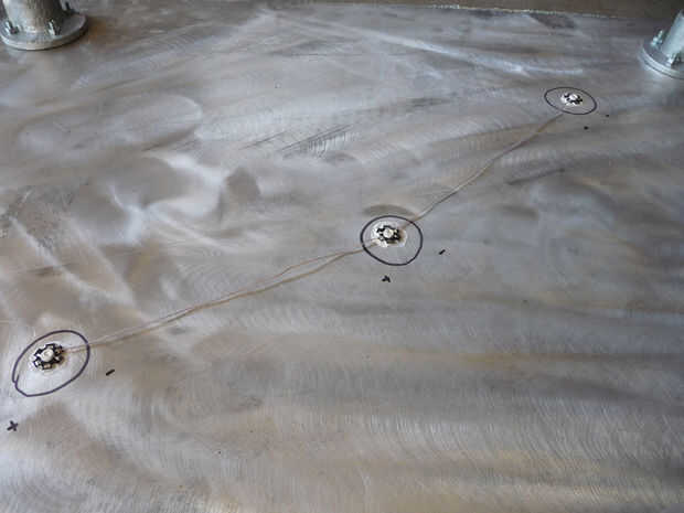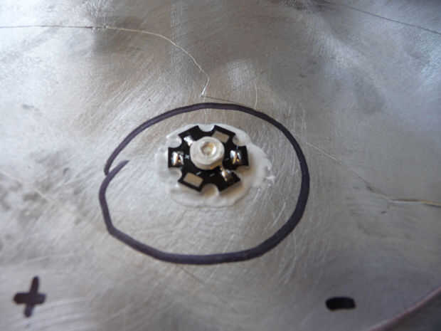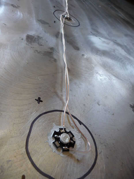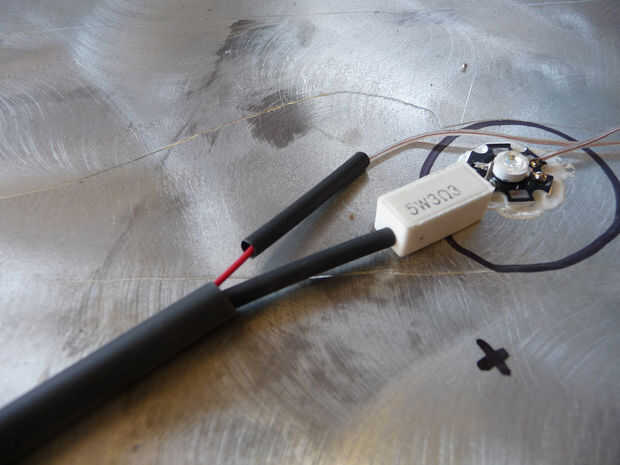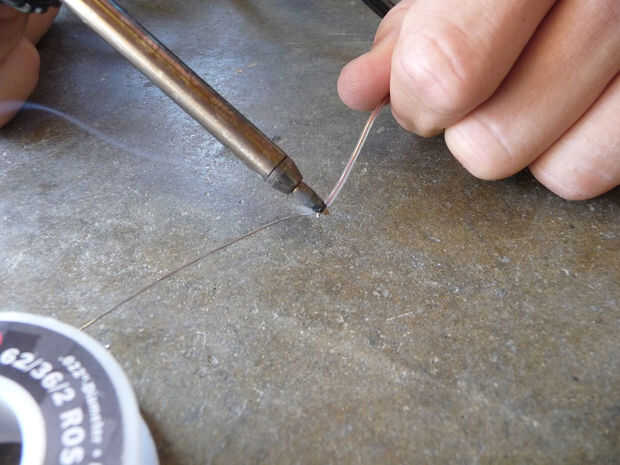 Uso de flux y soldadura o resina núcleo de soldadura, aplicar soldadura a las terminales de cada estrella de luxeon donde se hará una conexión. Añadir por separado soldadura a los extremos expuestos de los cables, por lo que puede realizarse una conexión fuerte rápidamente. Para su resistencia, doblar un extremo formando un apretado U, según un cuadro abajo, esto permite una más fácil instalación y alivio del estrés.