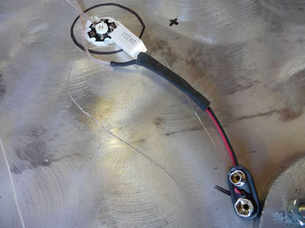 En su alimentación, cortar el conector del extremo y la soldadura de los dos cables a un conector 9v. Hay un diagrama de cableado. Los colores al revés a los conectores de 9v de la soldadura. Los colores se invierte con cada conexión debido a cómo los conectores se hacen. Así que para la conexión a cada grupo de LEDs única (lado de no alimentación), soldar el cable negro a la resistencia y el cable rojo al cable negativo fuera el último LED.