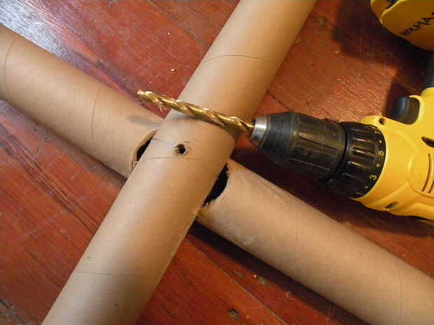 También había reforzado las muescas pegando un trozo de tubo en el interior de cada muesca. Esto no es estrictamente necesario, pero estar prevenido que una vez que usted toma una gran parte de la mitad del tubo, son capaces de doblarse y arrugarse cuando se maneja si no tienes cuidado. Trátelos con cuidado hasta que atornillan.