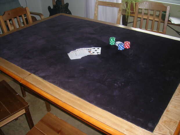 Todavía utilizamos esta tabla como una mesa de comedor, simplemente la cubierta con un mantel (no el vynyl uno con franela debajo de él! haremos un lío!)