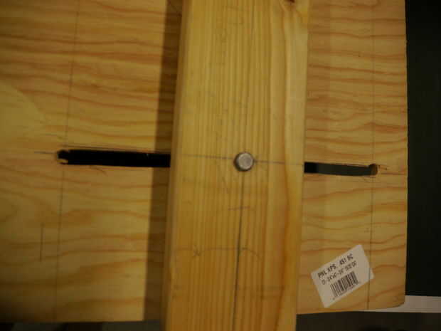 Perfore un orificio de 4,5 pulgadas desde el borde izquierdo de su 2 por 4 y en medio de ella. Espejo en el otro lado. El cuadro tiene el 2 por 4 con el perno de