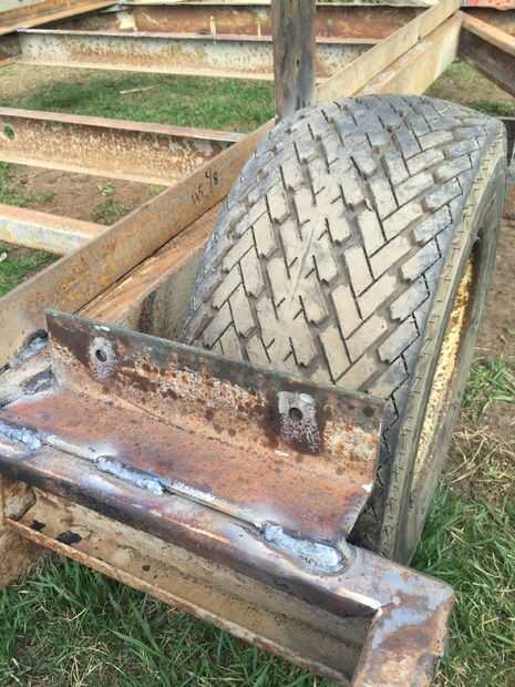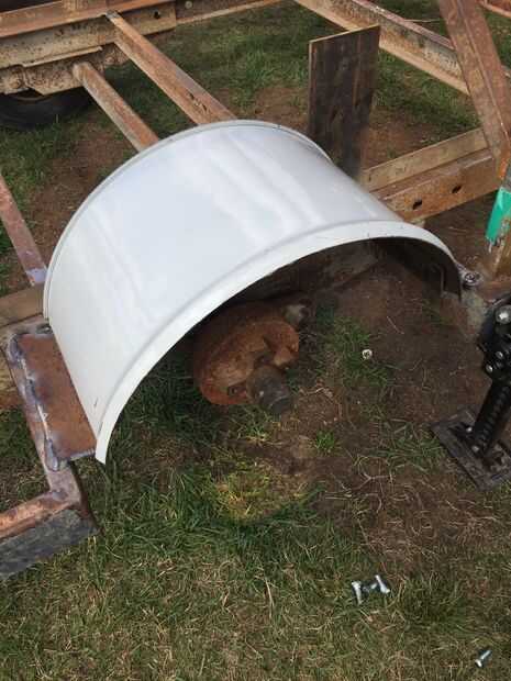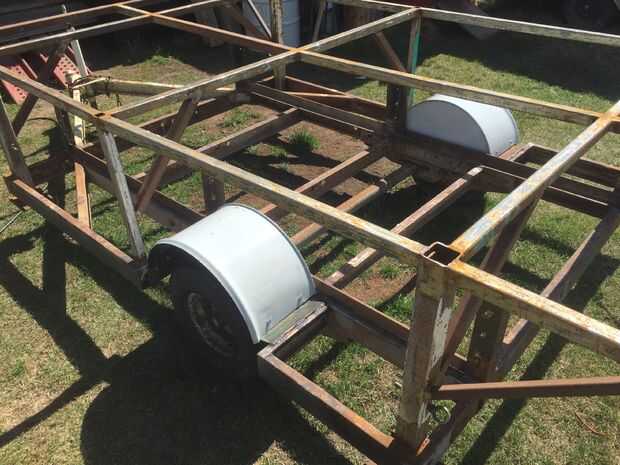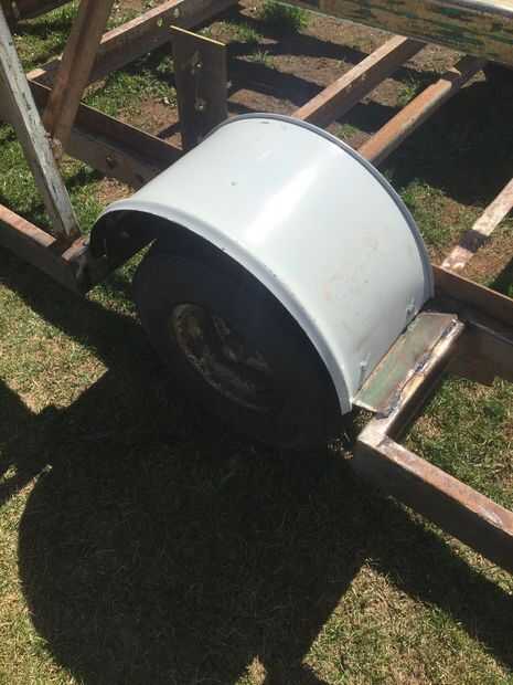 Para proteger las ruedas contra chispas o si alguna vez has querido tirar por el camino el remolque necesita defensas. Este cañón fue el diámetro correcto y funcionó a la perfección. Soldar unos soportes de hierro de ángulo al marco, los orificios perforados y asegurado en su lugar con pernos.