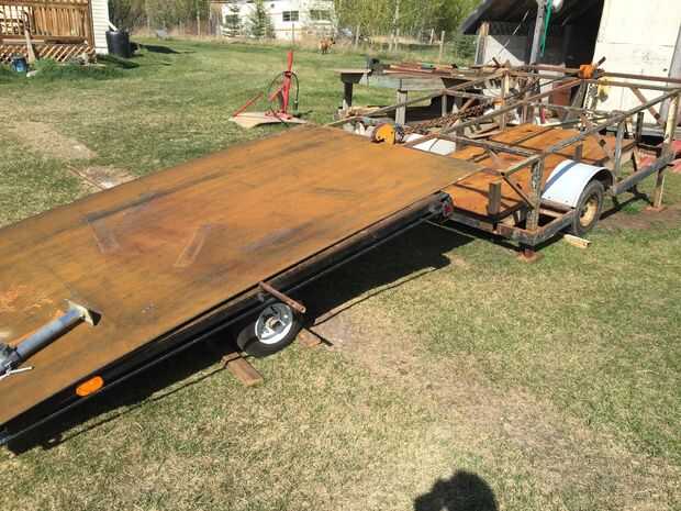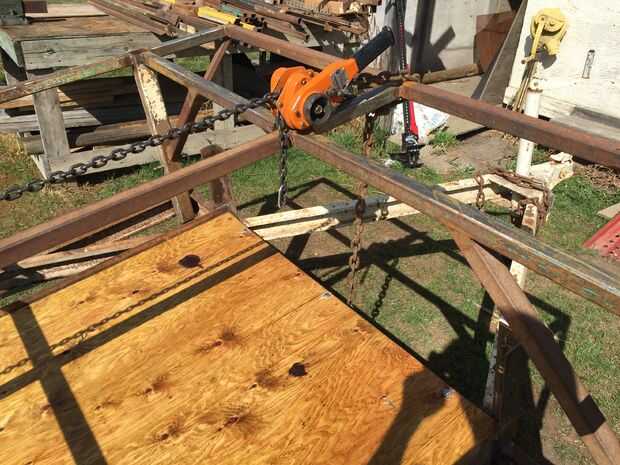 Poner la hoja de 6'10 ' de acero requiere un poco de improvisar ya que no tengo cualquier maquinaria pesada para levantar. Resultó ok pesca ambos acoplados abajo y vienen a lo largo de para tirar la hoja a través de.