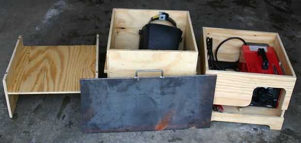 Como lo veo, una de las principales ventajas de los soldadores de arco (~ 100) poco es su portabilidad, debido a la reducida y 120 V de entrada. Sin embargo, la mesa de soldadura estándar es algo desgarbado, pesado y no tiene (o inadecuada) capacidad de almacenamiento de información y así que tiende a obstaculizar el despliegue rápido y conveniente de tal un soldador.