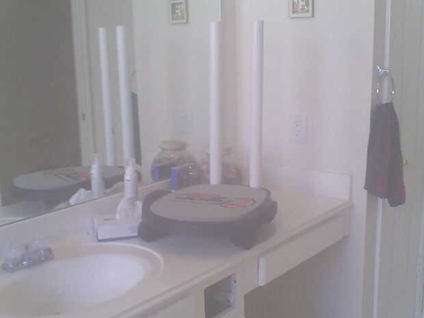 1. medida de la tapa de la cazoleta al nivel que desee la tabla que. 2. Añadir la altura de codo y madera. 3. reste el resultado en la parte 2 del resultado en la parte 1. 4. Corte dos puestos de esa altura.