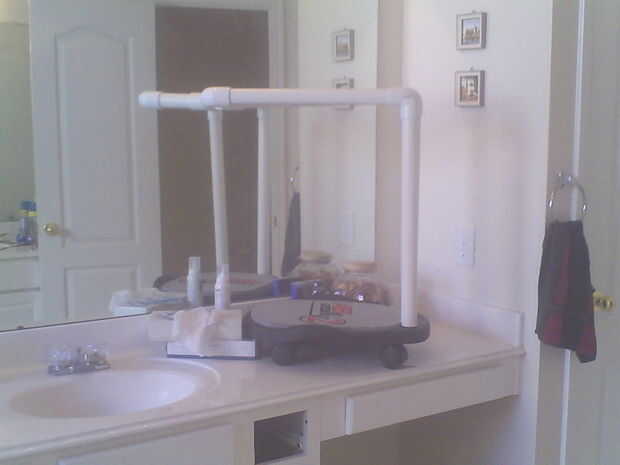 Tienes que cortar dos tiras de 1 1/2 pies de largo. Luego corte una longitud de 5 1/2 pulgadas entre los dos últimos ángulos rectos. Dry fit todo para que sepas lo que se tarda en hacer a todo nivel.