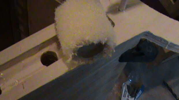 estoy construyendo un horno de vacío para secar madera.  Se hace fuera de 12" tubería de PVC - SeeHow para aprovechar un gran agujero en un tubo de PVC grandeEstoy usando el material de la encimera de superficie sólida Corian ya que no es poroso y es