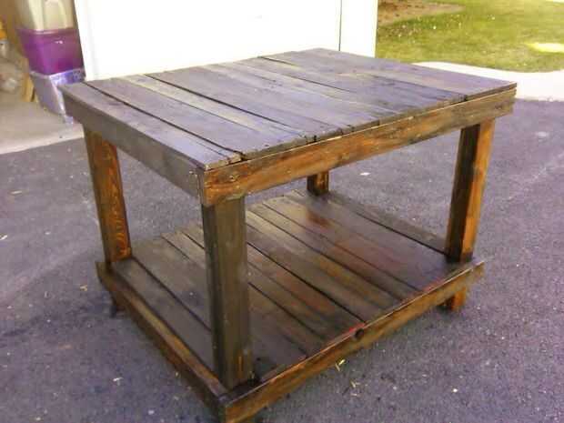 Esta tabla es un proyecto muy simple que requiere nada sino unos palets de rascado y su opción de tinte o sellador. Hay muy poco de medición o de corte necesario y de hecho incluso las uñas de la plataforma fueron reutilizadas.