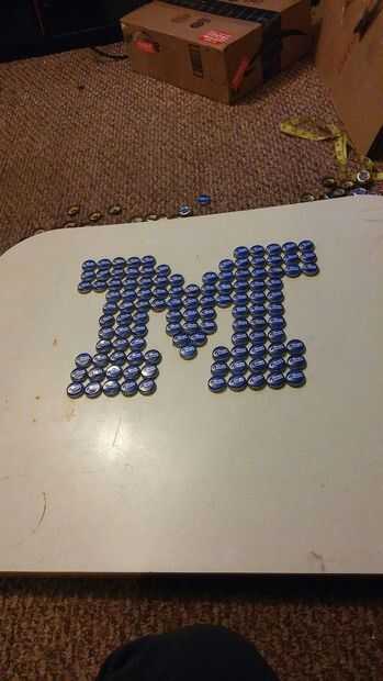 sabía que quería que el bloque M en el centro pero mucho de ensayo y error planea averiguar cómo quería colocar el resto de mis caps. No quiero que se vea demasiado ocupado, pero también quería usar algunas de las tapas más únicas. He medido y trazado mi diseño (dos veces porque el gato molesto arruinó la primera de ellas... Yo no recomendaría el trabajo de piso si es posible)
