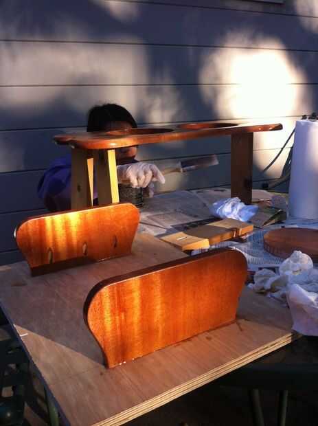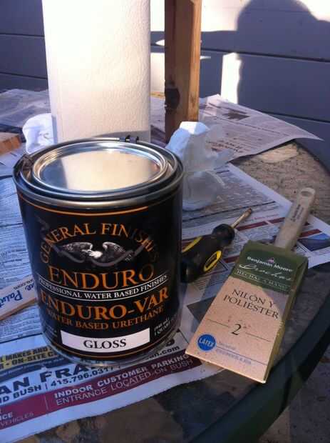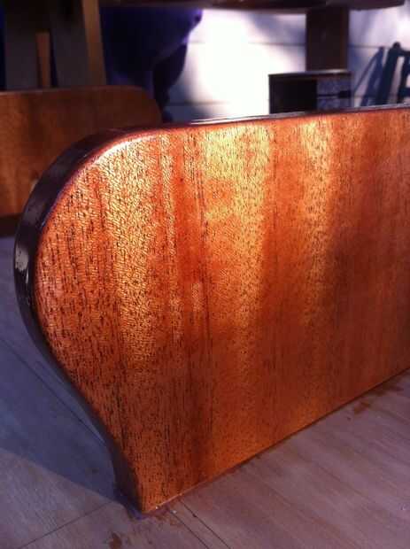Para el acabado, aplicamos General acabados Enduro Var con un cepillo. La caoba es una madera de grano abierto, por lo que he leido algunas personas recomiendan utilizar grano relleno, pero apenas salimos adelante y a poner en la capa transparente. Ponemos en un montón de capas, así podríamos arena plana.