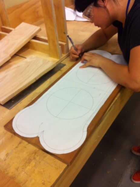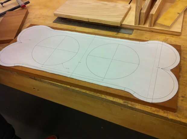 Primero modelamos la mesa perro en SolidWorks.  Entonces nos imprime dibujos así que podemos trazar el diseño sobre la madera.