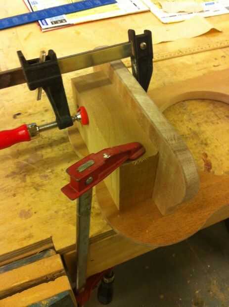 Este fue el enfoque más simple y menos costoso para este tipo de proyecto: talla forma interior redonda.La foto es de una burl que tallada en forma de tazón de fuente. Tomé cuñas triangulares y dispuesto bajo el burl como cuna y sujeta a la mesa (otr