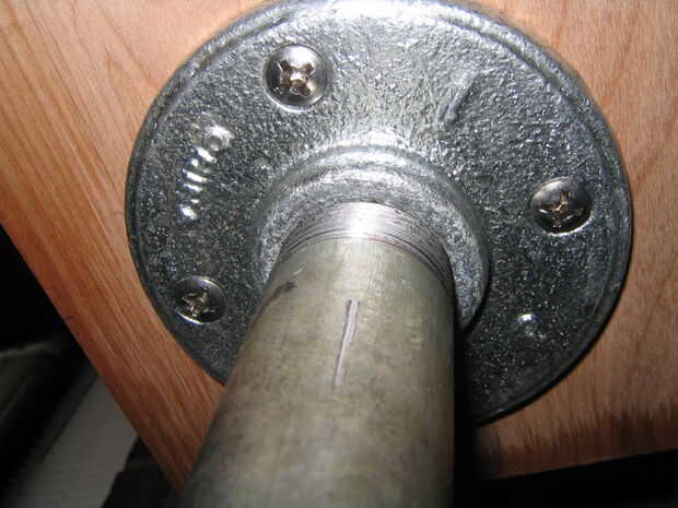 esta mesa de trabajo hecha de contrachapado de abedul y tubería galvanizada de la pipa es perfectamente utilitaria.