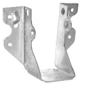 Lo más importante es alinear los clavos para el hangar de la viga de modo que el borde superior de los travesaños verticales debe estar a nivel con el borde superior horizontal de los caballetes. La mejor manera de hacerlo es mantener un trozo de chatarra 2 x 4 en el hangar mientras sostienes el hangar contra el caballete. Alinee el hangar y el lado del caballete de la marca con un lápiz por los dos agujeros superiores en el hangar. Usted debe han medido ya que los hangares se espaciarán uniformemente.