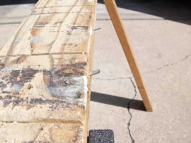 Martillo un clavo cada marca de lápiz, dejando aproximadamente 1/2" de la Junta. Trate de conducirles tan recto como sea posible para que no divide la parte superior del caballete o salen de la parte inferior. Luego corte las cabezas de los clavos con la sierra y el archivo de los filos. Con los alicates, dobla cada una de las uñas hasta cerca de 20 grados; no tanto para enlazar o subir los hangares por encima de la descarga, pero lo suficiente para sostener el hangar resbale la uña. El peso de los miembros de la cruzados y la parte superior tendrá todo muy bien.
