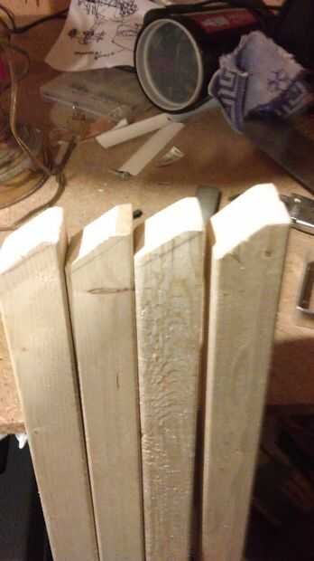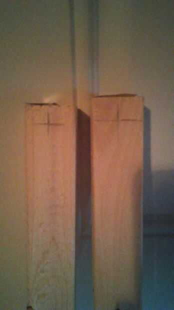 El puesto del perno en el orificio superior de cada pata y trazar la parte superior del perno en el lado. Retire el perno. Utilizando el archivo grueso, limar los bordes de ambos lados paralelo al agujero. Hacer esto hasta que ninguna madera es visible al lado gira alrededor del perno cuando se conecta a la pata. Repita con la otra pierna.