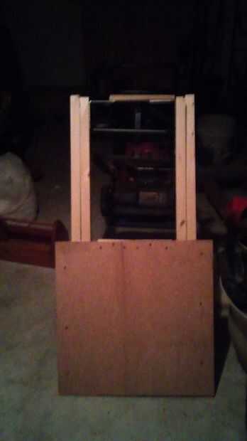 Construí una mesa de trabajo relativamente pequeño que puede ser movida fácilmente alrededor de mi garaje. Inicialmente esto fue hecha porque me dieron una sierra para cortar ingletes compuestos usados, y usarlo sólo en el terreno no era muy fácil. T