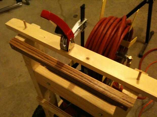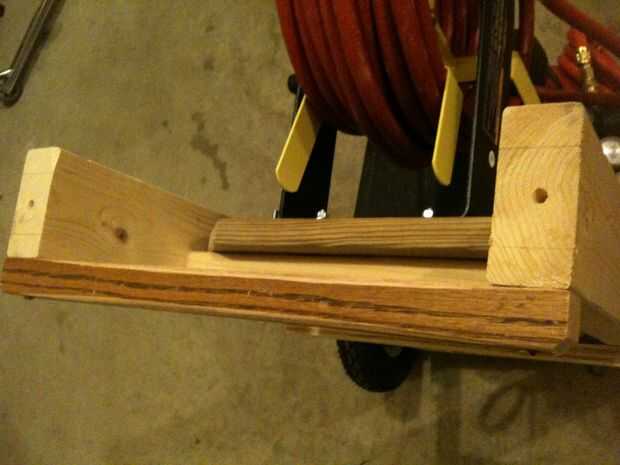 Tenía que tener un ¾" espaciador entre mesa y vertical 2 x 4 para conseguir la manguera del carrete espacio libre necesario.