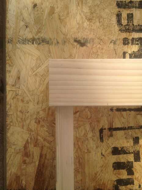 Abrazadera de ángulo recto Para crear una sección de la pierna, utilizando la combinación de abrazadera de ángulo recto el extremo de uno 39" cruzar la viga hasta el final de uno de los más cortos de piernas componentes. Para ayudar a explicar los pasos más adelante, nos referiremos a esto como a viga cruzada. Al final de la pierna debe a tope hasta el lado más plano de 2 x 4 de la sección transversal formando un ángulo recto. El extremo de la viga transversal debe quedar al ras con el lado largo plano de 2 x 4 de la pierna. Efectivamente, esto alarga la altura por 1 1/2", o thichkness de 2 x 4. (ver imagen).
