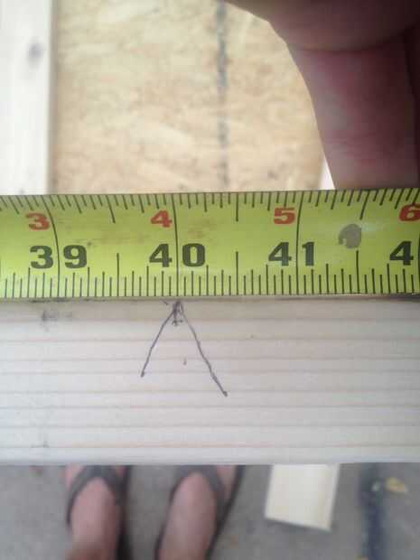 Para mí, esta longitud de espacio vino a 40". Se asegurará la viga cruzada con dos 3" curso Drywall tornillos perforados a través de la viga Longitudinal en ambos extremos de la viga cruzada. El rayo de Cruz está en la posición vertical. Asegúrese de mantener la descarga de rayo cruzado con los largueros en la parte superior e inferior. Usando la abrazadera aquí se asegurará de que la parte superior e inferior queden al ras.