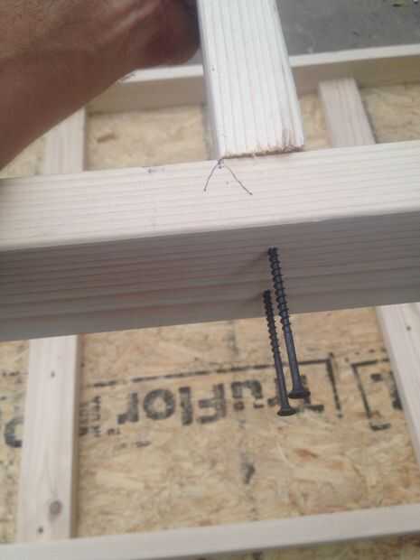 Te preocupes cualquier espacio que pueda existir entre el extremo de la viga de cruce y el lado de los largueros como los tornillos de la perforación "aguántate", apretando las dos piezas juntas.