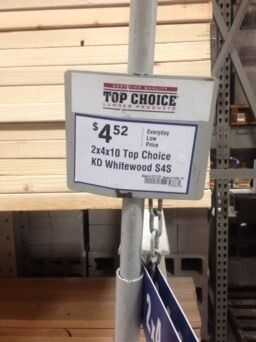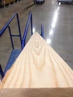 El marco de toda la tabla está hecho de madera de 2 x 4. Existen varias longitudes a elegir así que asegúrese de obtener la longitud de 10 pies. Seleccionar tablas que no estén curvados a ambos lados mirando hacia abajo de la Junta. Es muy fácil decir si la Junta está torcida simplemente por "echando un vistazo". (ver imagen). Debe haber bastante una selección así que pasar unos minutos extras para obtener 6 tableros de buena y recta.