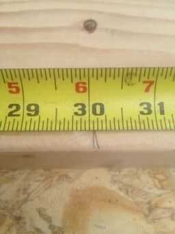 El método relativo es más y un poco más complicado. El beneficio es reducir el número de cortes a 3 y que no tiene desperdicio resdual. Aunque esto es muy mínima basura en este ejemplo, puede conseguir a veces innecesarios para proyectos de escala más grandes y más grandes. En nuestro proyecto, contamos con 6 tableros de 2 x 4 que son aproximadamente 10 pies de largo. Y casi siempre te dan algunos extra para jugar con. Uno de los tableros que tengo es 120 7/16" de largo. La altura total de la tabla está dirigida a 36" pero esto no es crítica. Podemos aceptar una tolerancia de +/-1". Y ya que estamos un poco flexibles con altura de la mesa, la altura de la pierna puede desviarse de la marca de 30" y aún ser la misma longitud en relación con la longitud total simplemente dividiendo el tablero en 4 trozos iguales. Obtener la longitud de la componente de la pierna de su placa específica