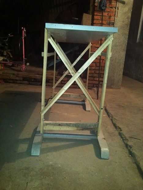 mi amigo recibió un viejo banco en pedazos. Tenemos que averiguar cómo poner juntos y al hacerlo me sentí intrigado por lo simple, fuerte y fácil de construir el diseño. He determinado que necesito quitar e invertir el motor de mi motocicleta Ninja,